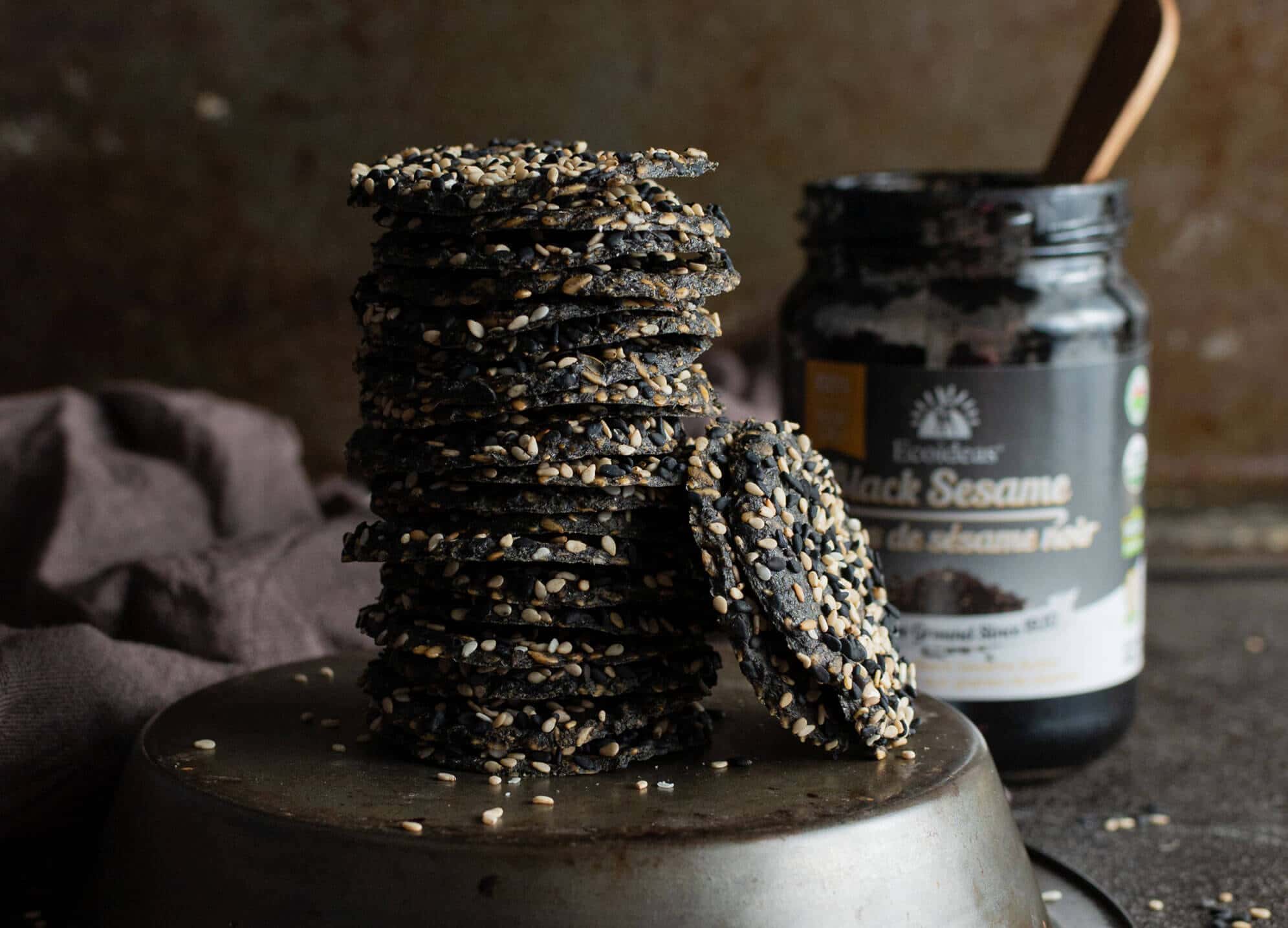 Dehydrated raw, vegan black sesame crackers; super flavorful and easy to make.