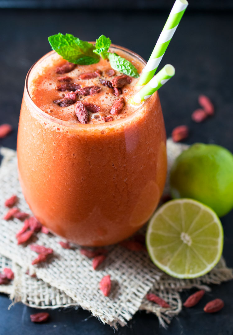 It was 20 degrees (Celsius) in Edmonton, Alberta (Canada) so I was craving something light and refreshing! If I drank alcohol I would have indulged on some margaritas, but since I do not, this was the next best thing! This smoothie is so refreshing and made it feel like summer. I always have Goji Berries on hand and I sure do not use them enough; I always forget what a powerhouse of nutrients they are.