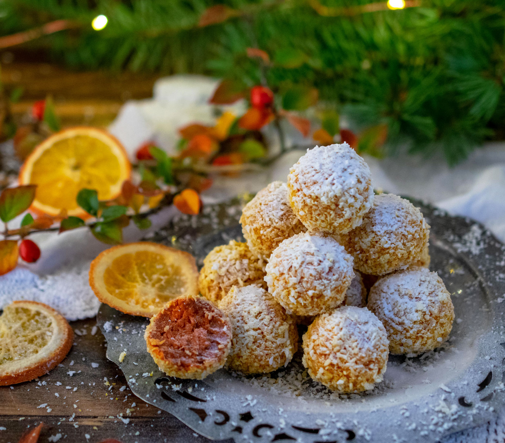 Raw, Vegan, gluten and nut-free! These bites are made from a base of coconut and full of christmas spice!