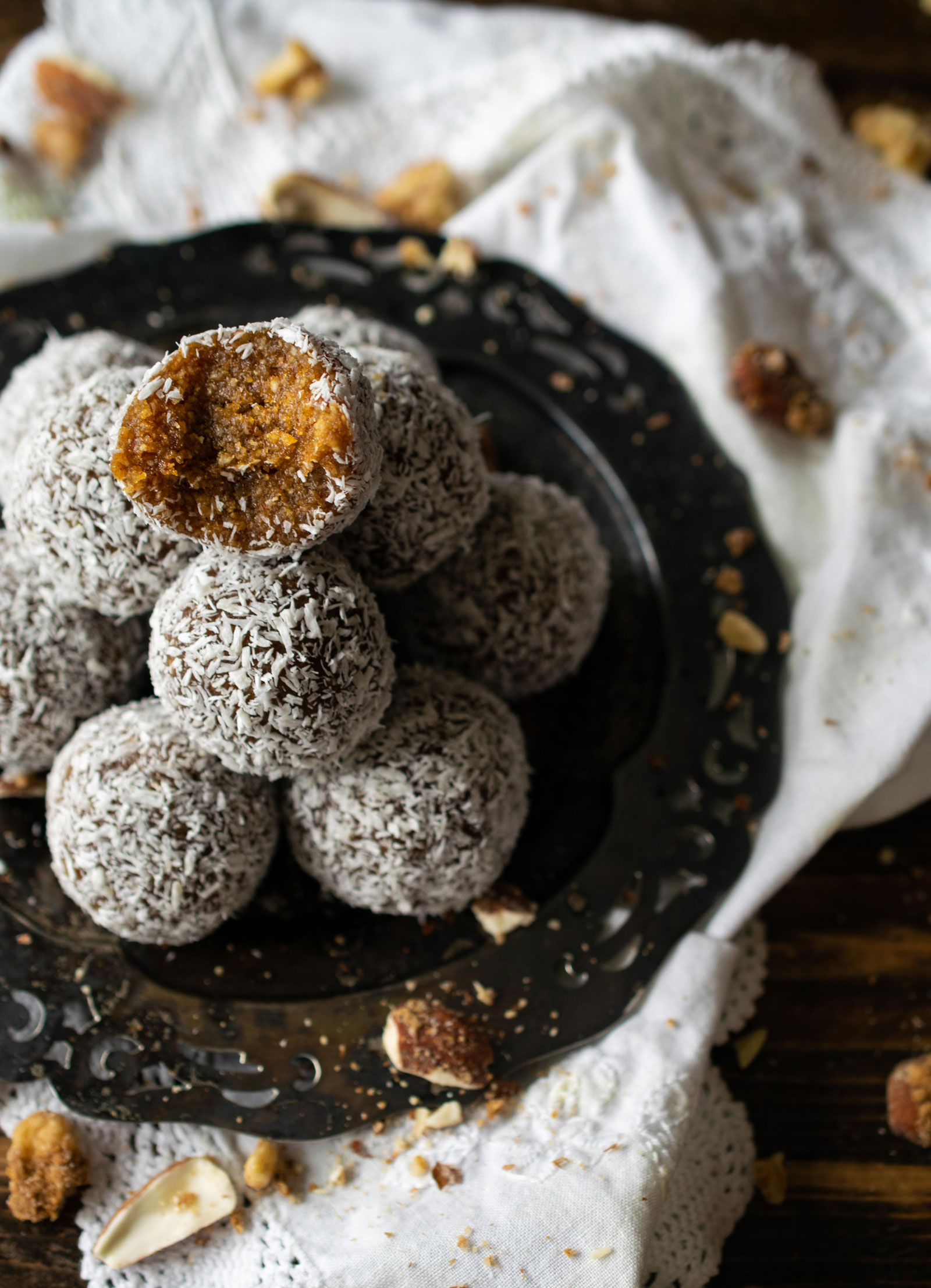 I hate to admit but pumpkin season is my fave; anything with pumpkin, pumpkin spice, cinnamon, apple… yum! I end up posting a lot of pumpkin recipes this time of year and I LOVE it 🙂 This recipe is adapted from Spirulina Mint Bliss Balls taught in Pure Joy’s Plant-Based Low Carb Chef Certification. They are one of my favorites and knew it would be good as a pumpkin cake bite.