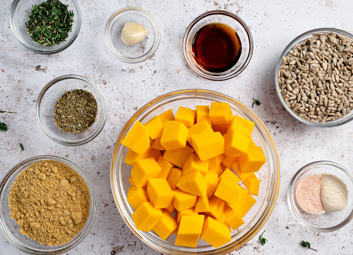 I’m a huge fan of butternut squash over pumpkin; I think it’s an underused ingredient in raw food. Most people don’t realize butternut squash and pumpkin can be eaten raw. They make a great base in dehydrated foods such as crackers, pizza bases, wraps and crackers.